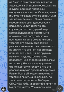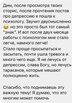Поэтому особо не копайся в себе - лучше копать с психологом, который подхватит и поддержит. Мне это очень помогло. Я уже своего психолога достал со своими спасибами.